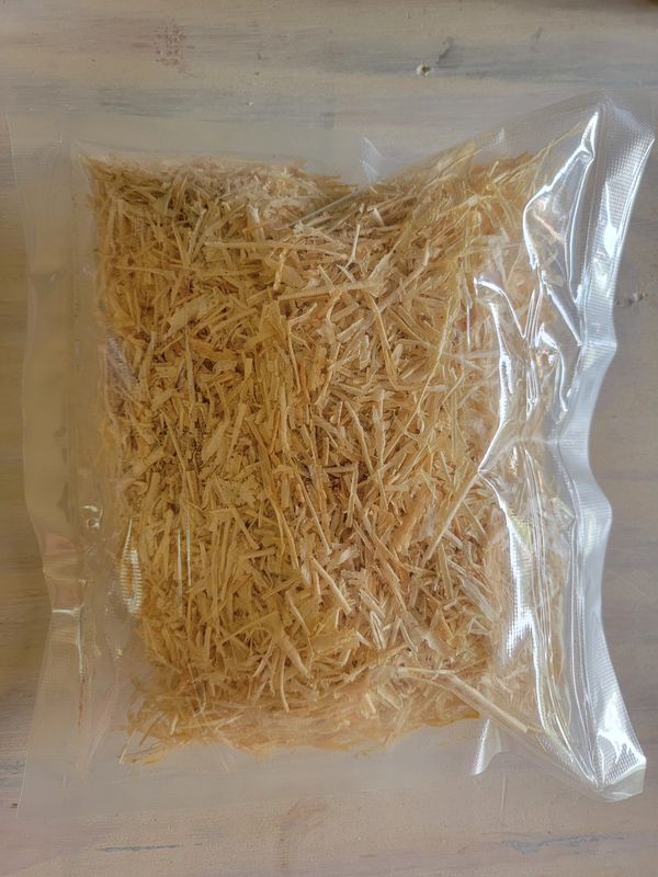 Vacuum-sealed bag of clean, reclaimed planner shavings and sawdust. Dry -packed for ultralight bug-out bags, home kits, or emergency stashes.